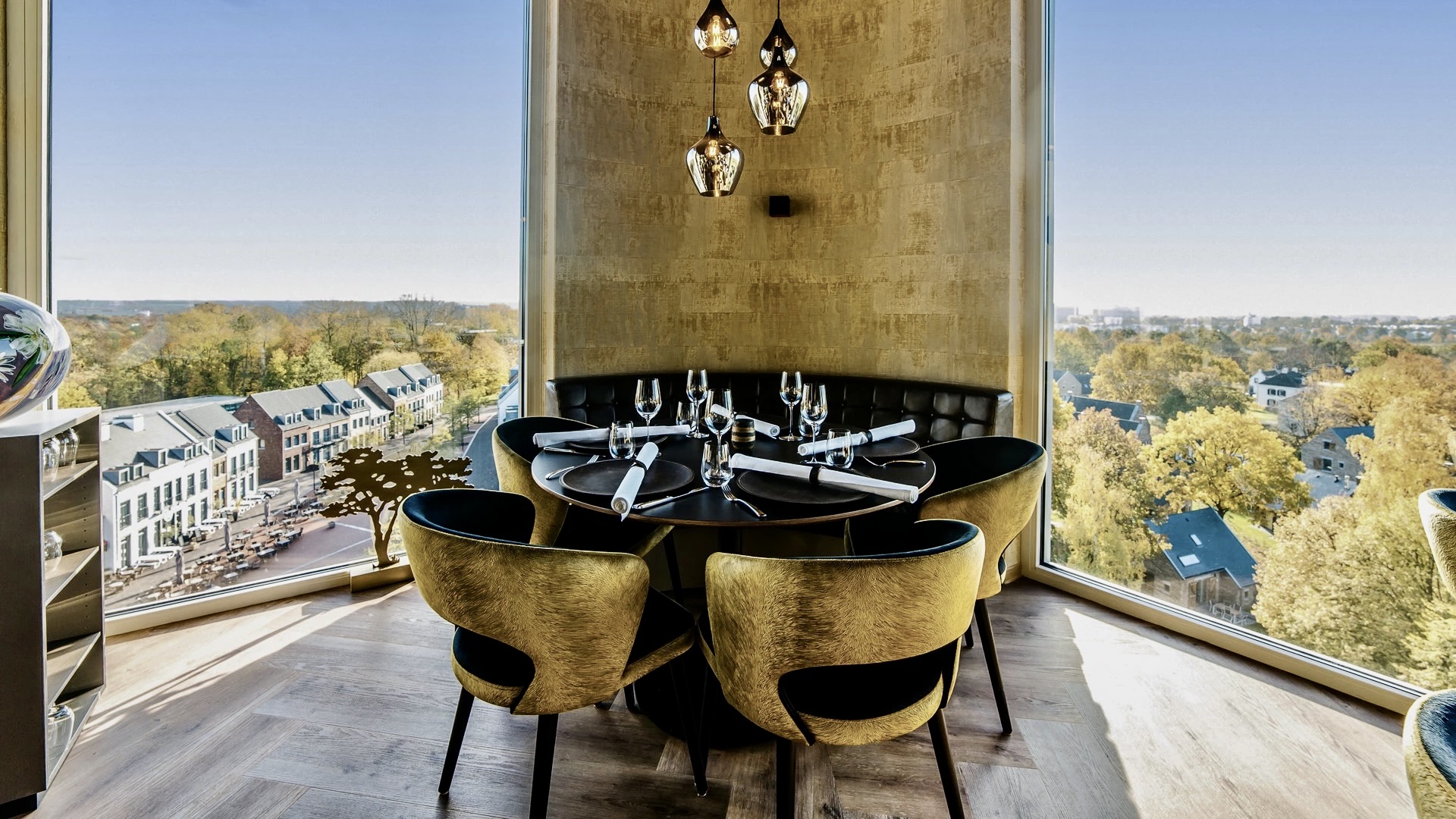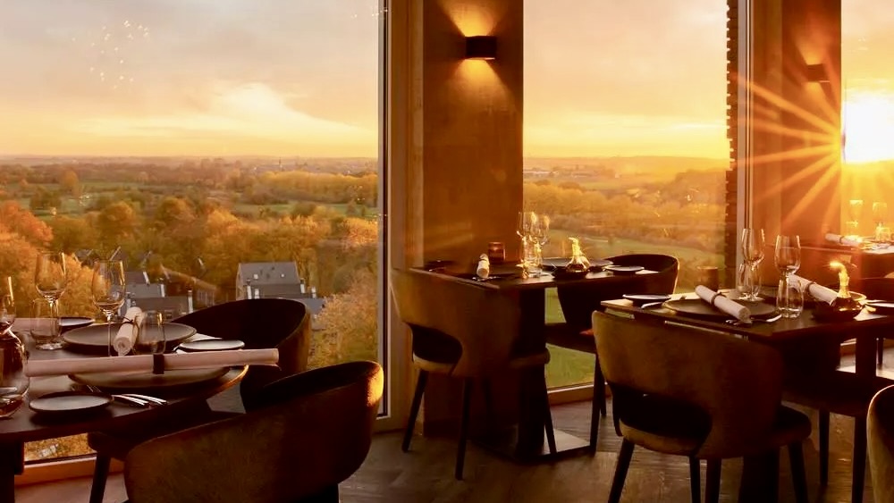 Een iconische positie met maximale zichtwaarde en uitstraling. Gelegen op het hoogwaardige Dormio Resort Maastricht waar onbezorgd én ontspannen verblijven hoog aangeschreven staat. Hier, naast de golfbaan van Maastricht alsook de skibaan genieten gasten van uitgebreide faciliteiten. Op het sfeervolle centrale plein van het park met terrasjes en een bakkerij liggen diverse dagwinkels en het luxe spa-wellnesscentrum Thermen Maastricht. De iconische toren werd tijdens de ontwikkeling al bestemd als baken voor het park. Te zien vanuit de verre omgeving warmee de bovenste verdieping alle grandeur toont van deze plek. Overdag licht en ruimtelijk, ’s avonds een spectaculair decor bij zonsondergang. Volledig rondom deze hoogste etage is er panoramisch zicht naar Maastricht en België. Hoge ramen en uitermate goede materialisering voor een ruim zicht en geweldig binnenklimaat en akoestiek. Met elk seizoen een ander vergezicht en elk moment van de dag een ander blikveld. Een plek waar exclusiviteit en beleving samenkomen.
